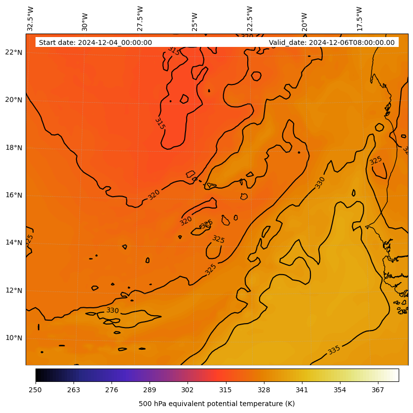 - Equivalent Potential Temperature (K)