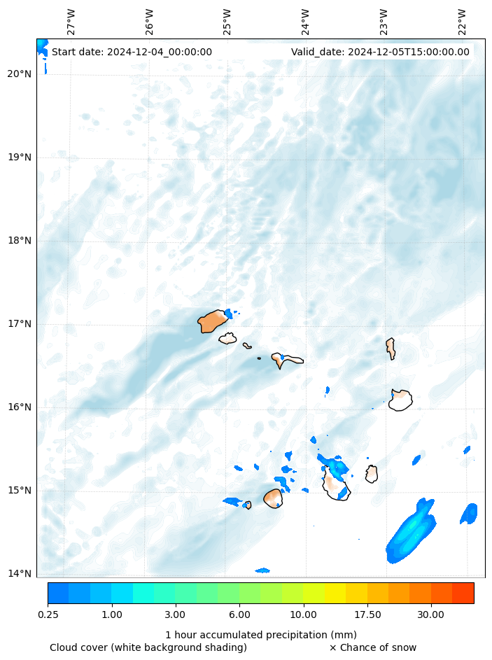 - Snow mixing ratio (g kg¯¹)