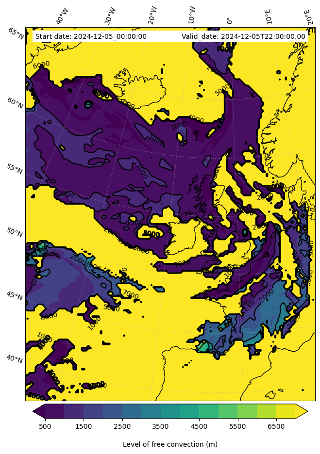 - Level of free convection (m)