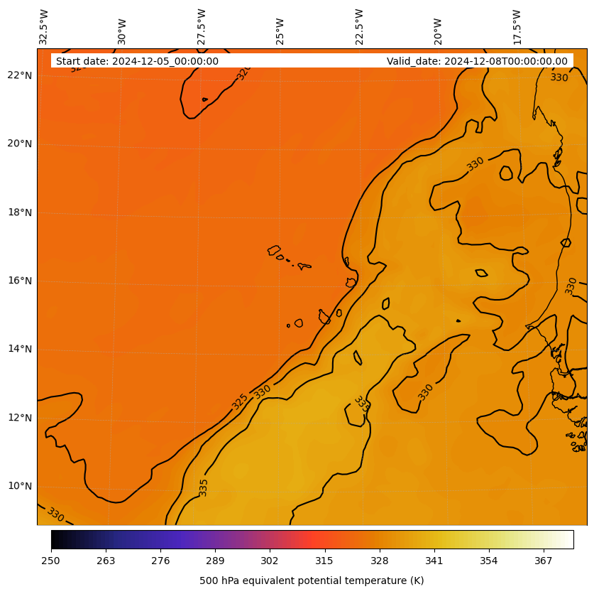 - Equivalent Potential Temperature (K)