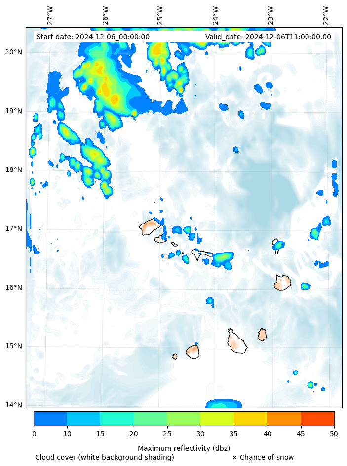 - Snow mixing ratio (g kg¯¹)