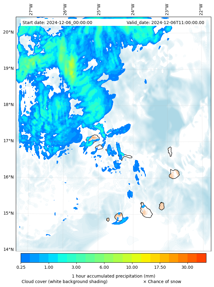 - Snow mixing ratio (g kg¯¹)
