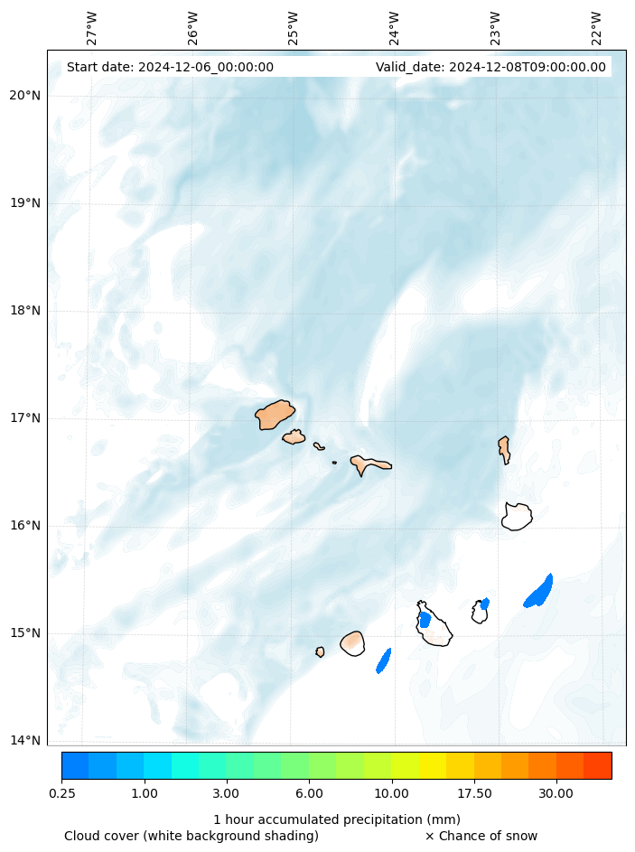 - Snow mixing ratio (g kg¯¹)