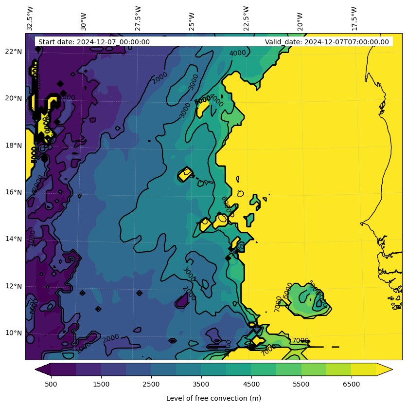 - Level of free convection (m)