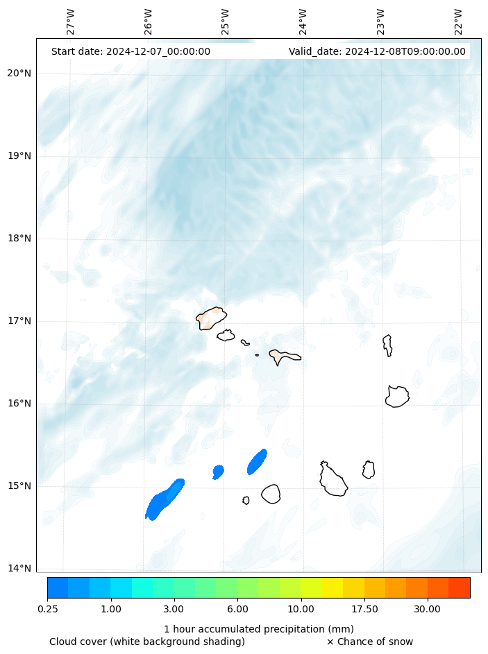 - Snow mixing ratio (g kg¯¹)