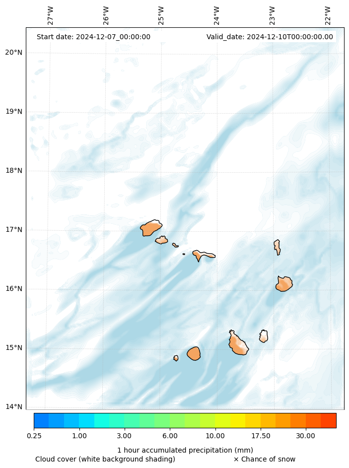 - Snow mixing ratio (g kg¯¹)