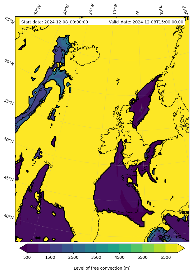 • Level of free convection (m)