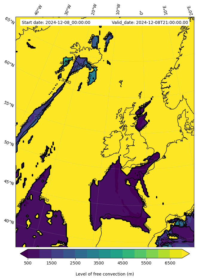 • Level of free convection (m)
