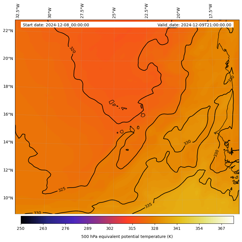 - Equivalent Potential Temperature (K)