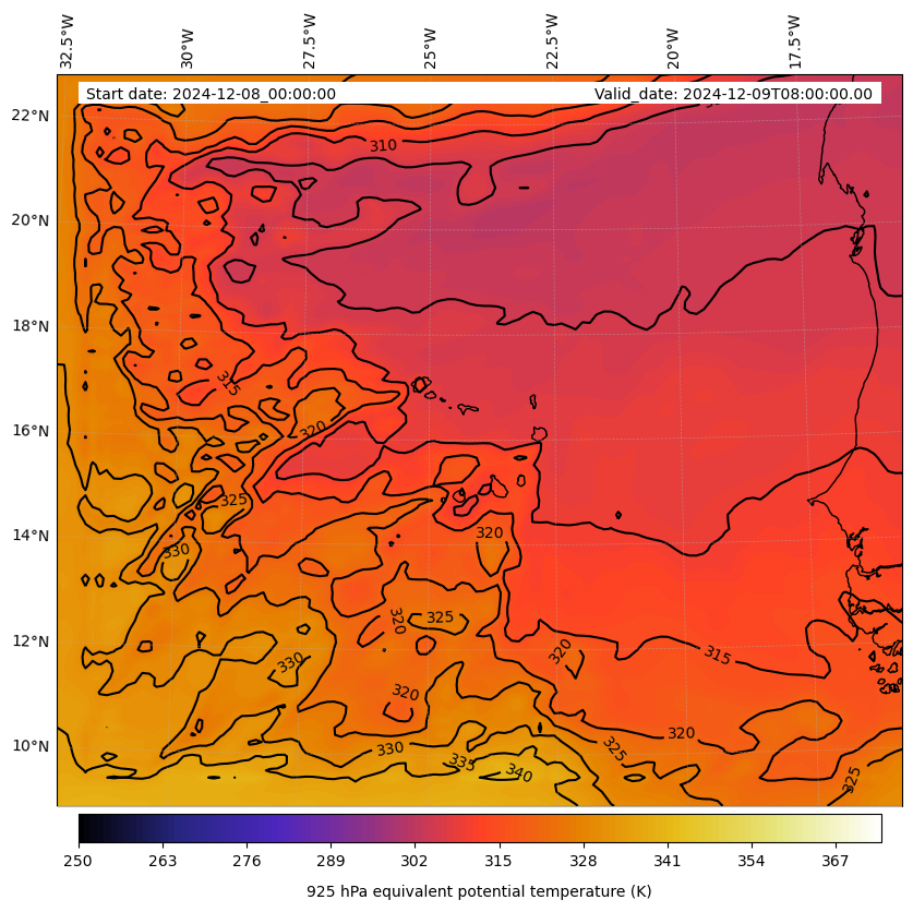 - Equivalent Potential Temperature (K)