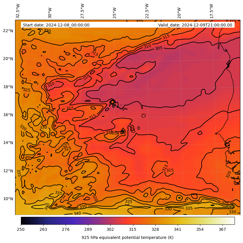 - Equivalent Potential Temperature (K)