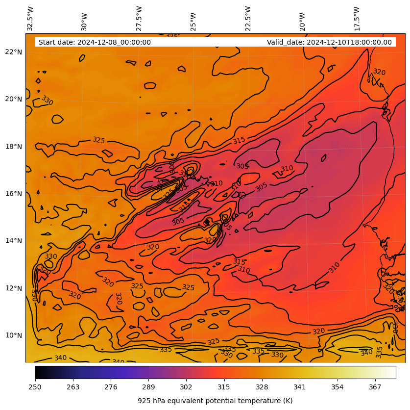 - Equivalent Potential Temperature (K)