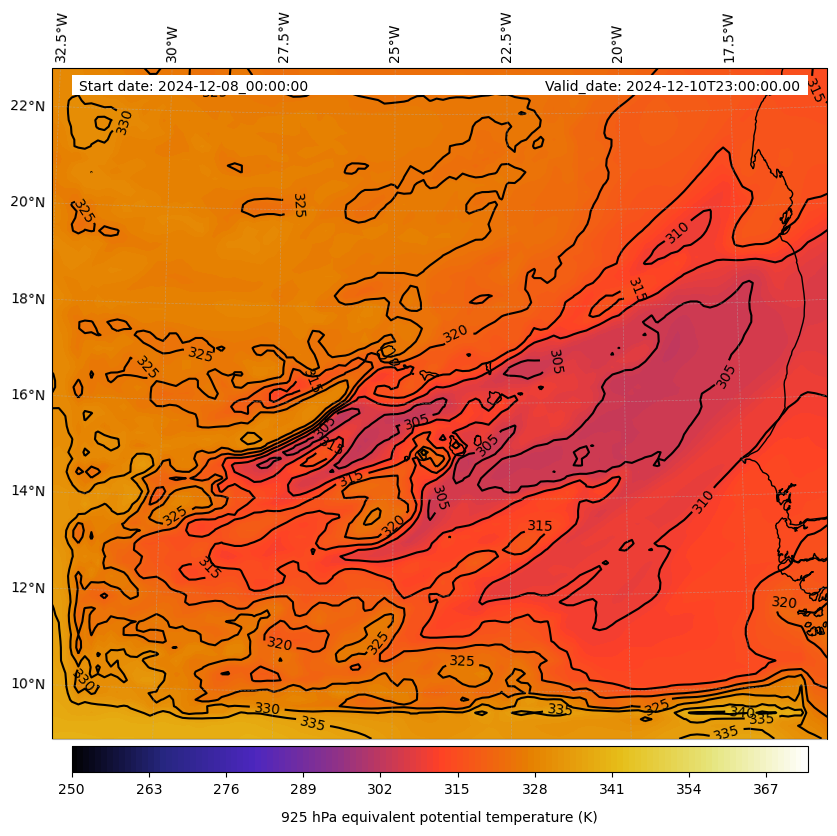 - Equivalent Potential Temperature (K)