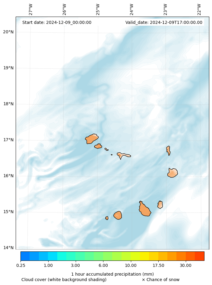 - Snow mixing ratio (g kg¯¹)