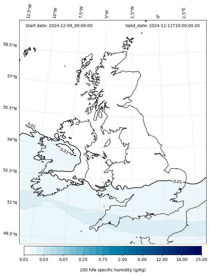- Water vapor mixing ratio (g kg¯¹)- 300 hPa