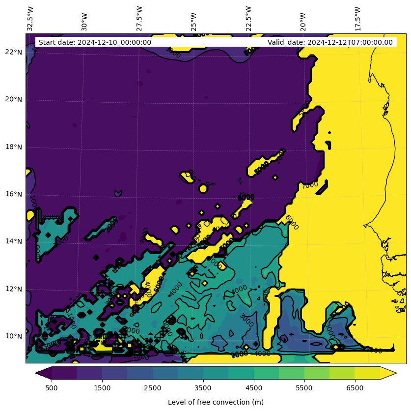 - Level of free convection (m)