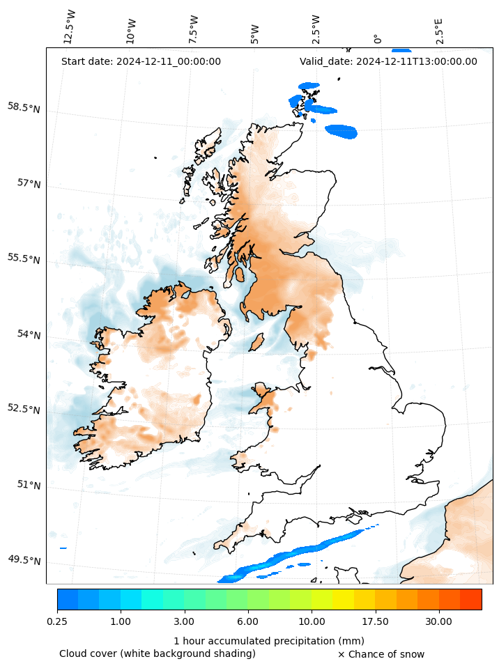 - Snow mixing ratio (g kg¯¹)