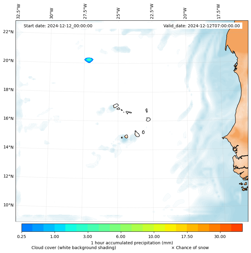 - Snow mixing ratio (g kg¯¹)