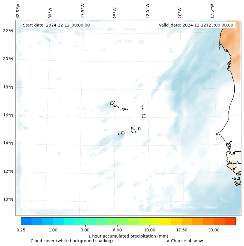 - Snow mixing ratio (g kg¯¹)