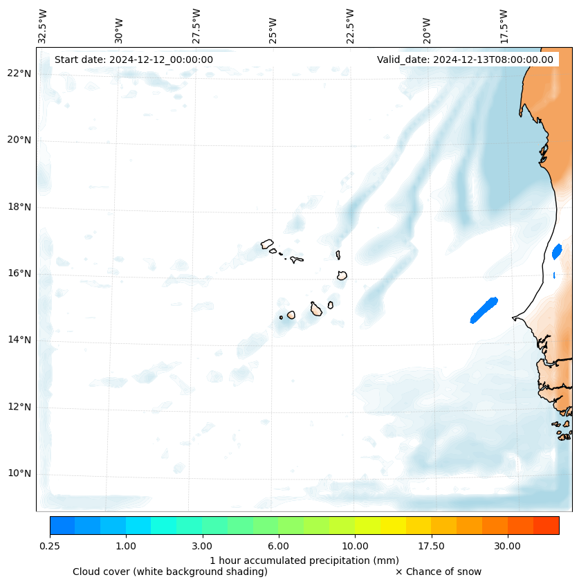 - Snow mixing ratio (g kg¯¹)