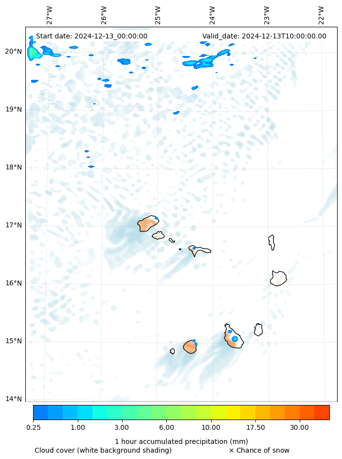 - Snow mixing ratio (g kg¯¹)