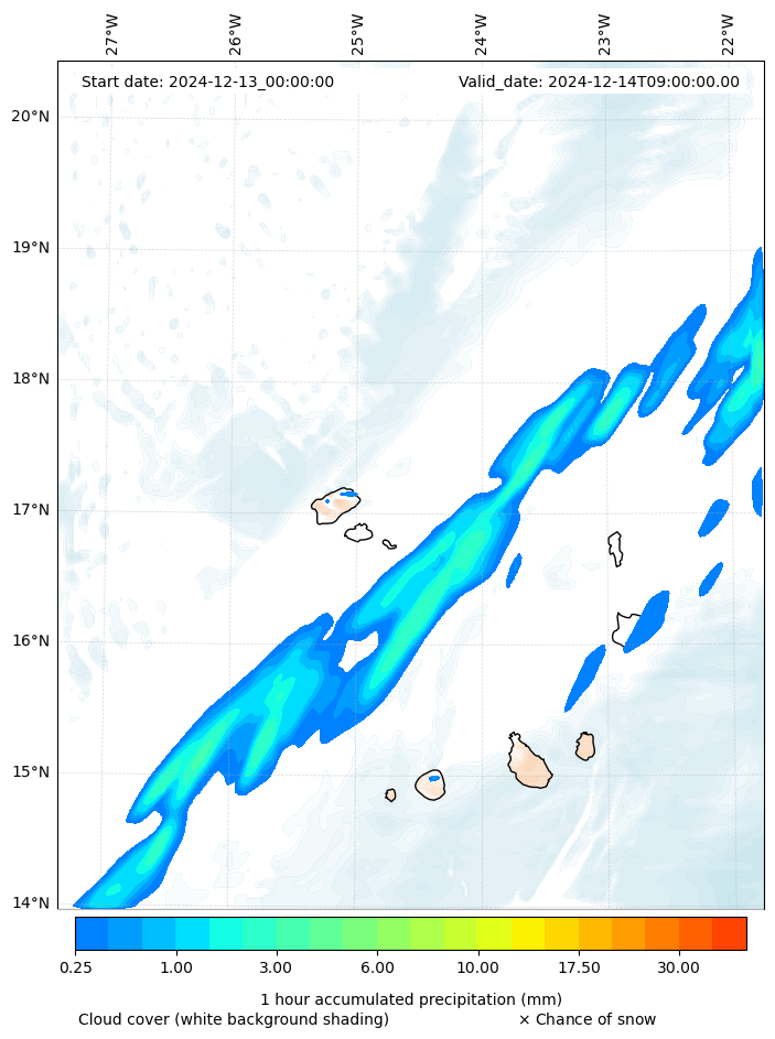 - Snow mixing ratio (g kg¯¹)