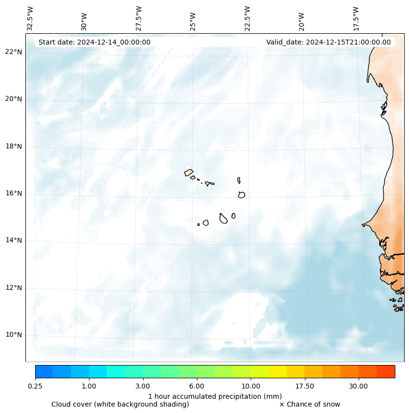 - Snow mixing ratio (g kg¯¹)