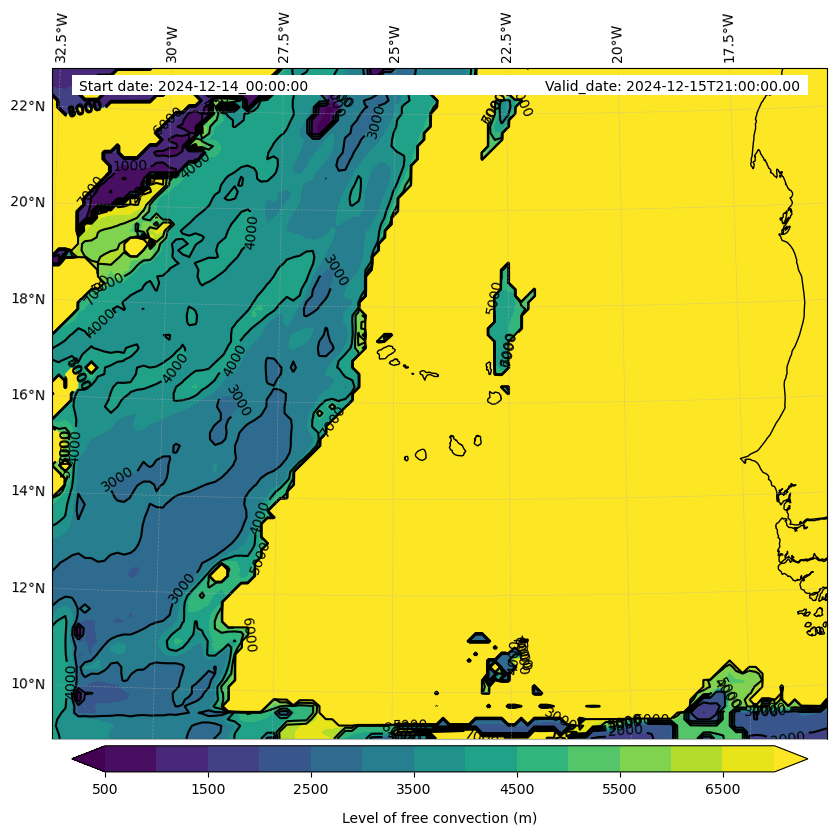 - Level of free convection (m)
