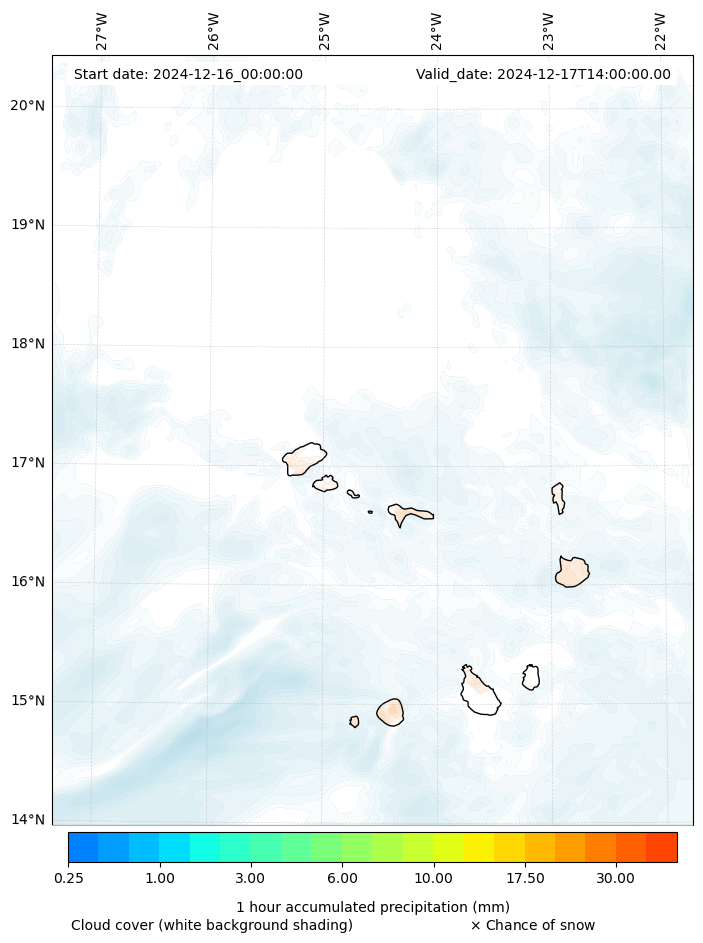 - Snow mixing ratio (g kg¯¹)