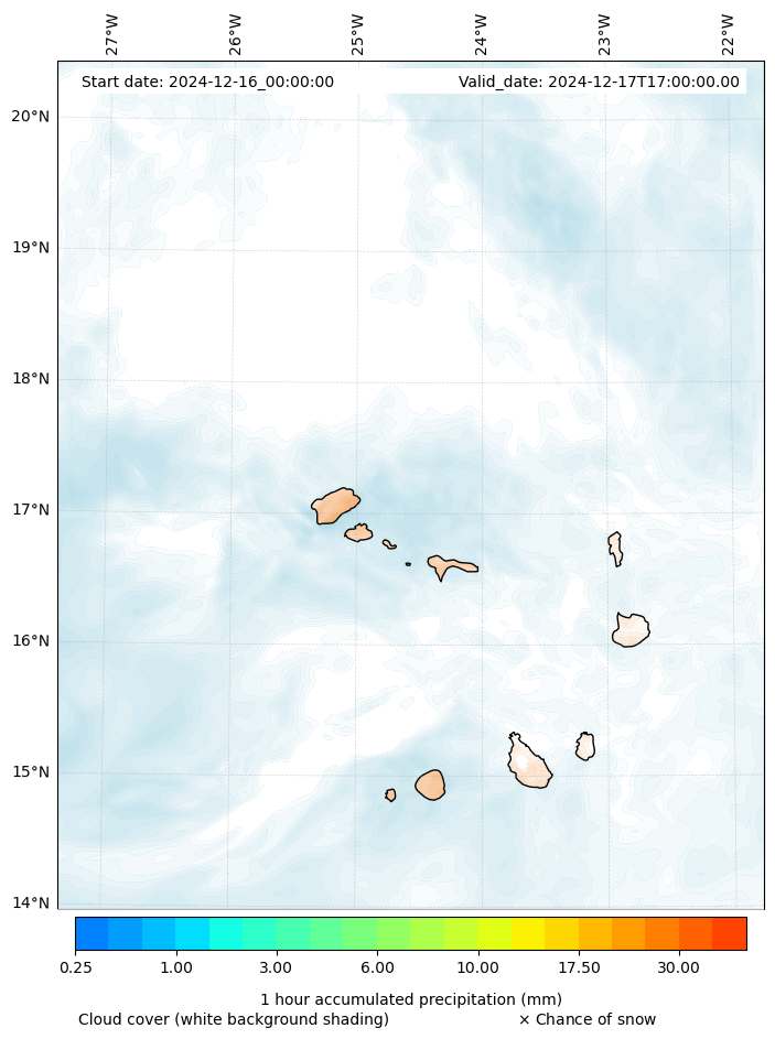 - Snow mixing ratio (g kg¯¹)