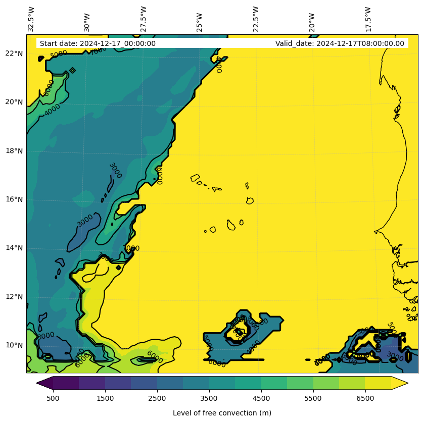 - Level of free convection (m)