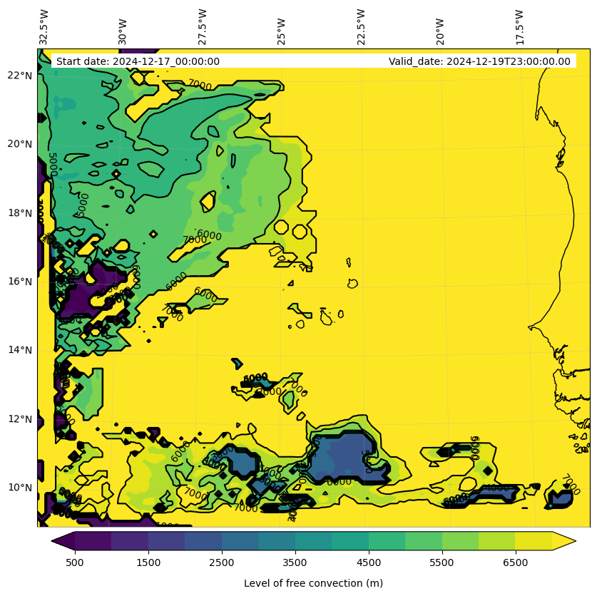 - Level of free convection (m)
