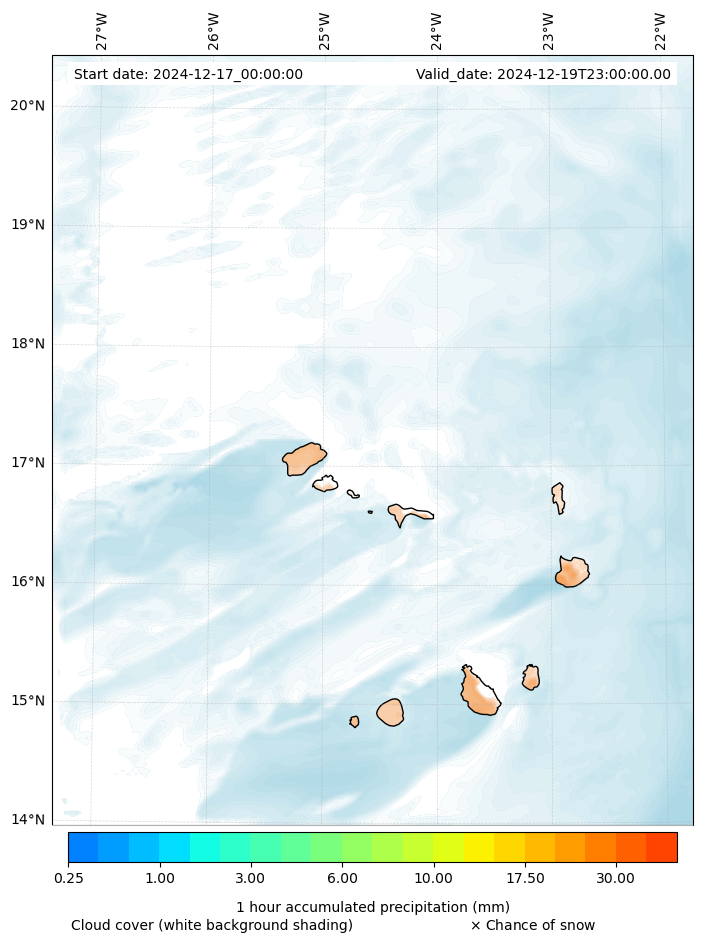 - Snow mixing ratio (g kg¯¹)