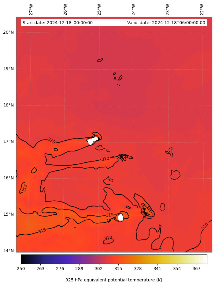 - Equivalent Potential Temperature (K)
