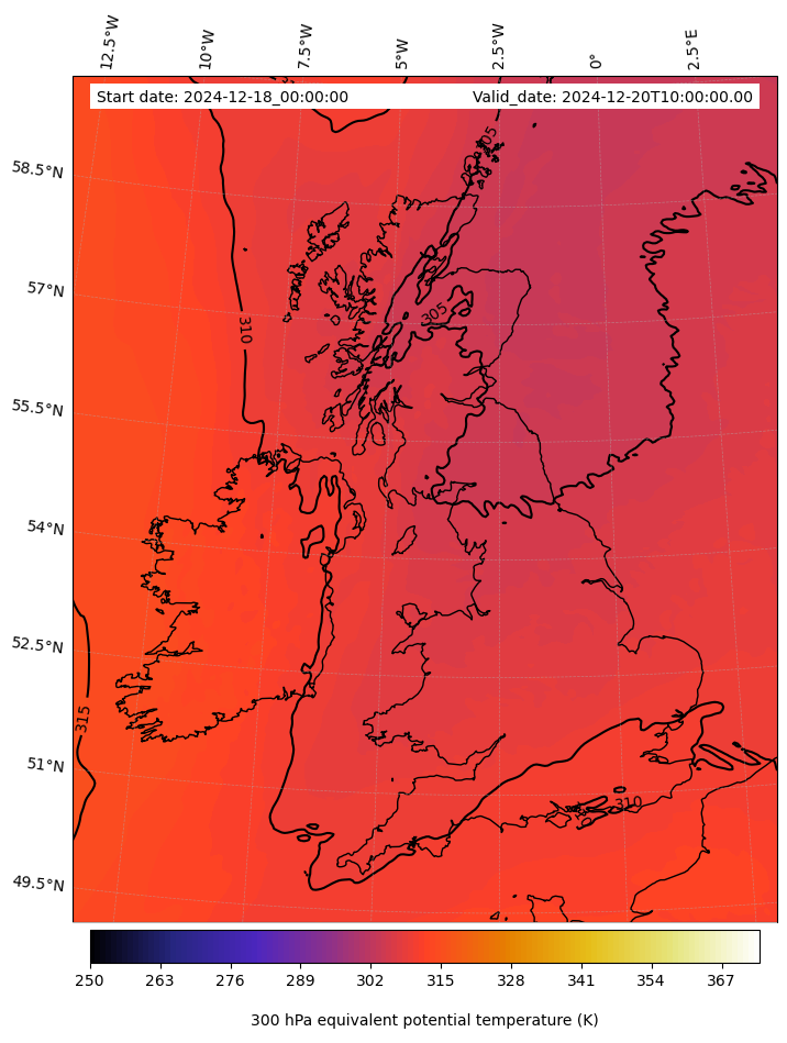 - Equivalent Potential Temperature (K)