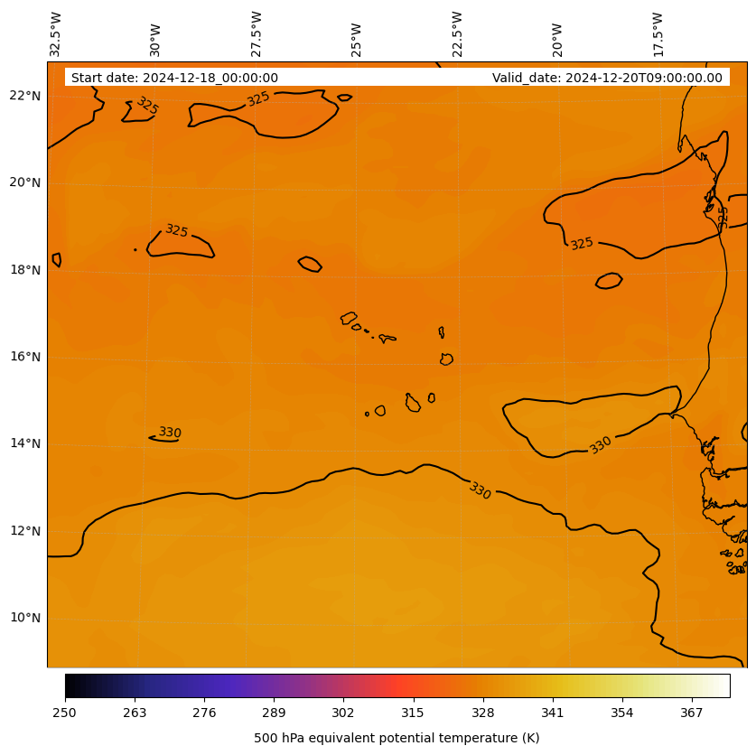 - Equivalent Potential Temperature (K)