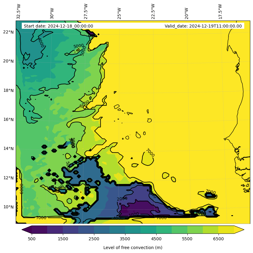 - Level of free convection (m)