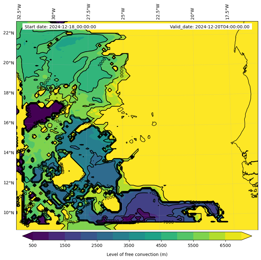 - Level of free convection (m)