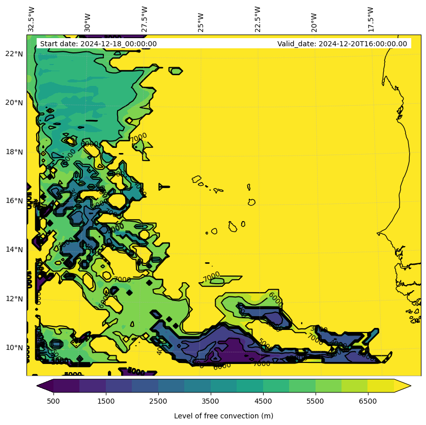 - Level of free convection (m)