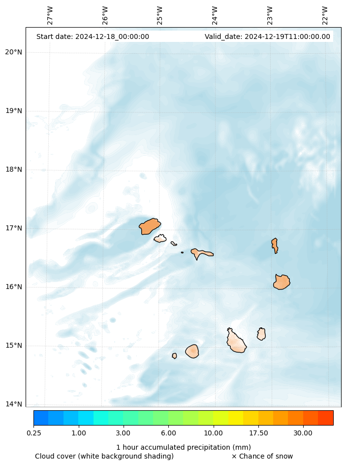 - Snow mixing ratio (g kg¯¹)