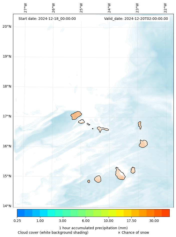 - Snow mixing ratio (g kg¯¹)