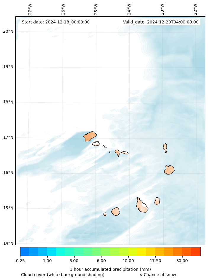 - Snow mixing ratio (g kg¯¹)