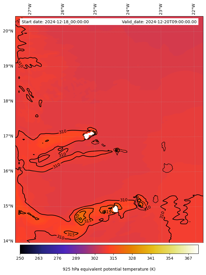 - Equivalent Potential Temperature (K)