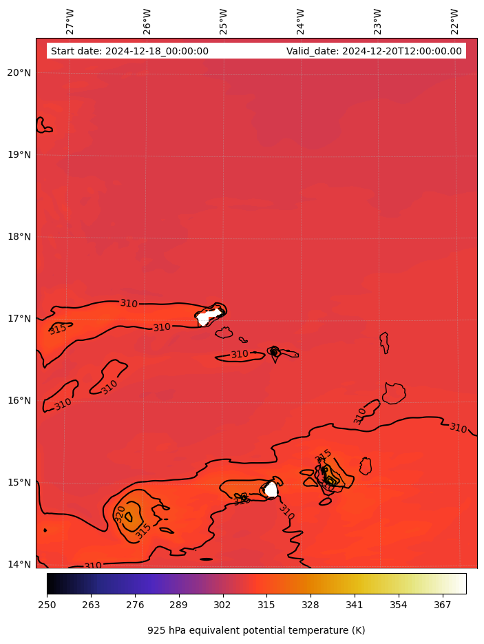 - Equivalent Potential Temperature (K)