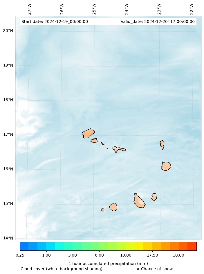- Snow mixing ratio (g kg¯¹)