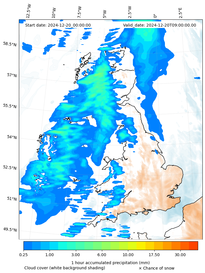 - Snow mixing ratio (g kg¯¹)