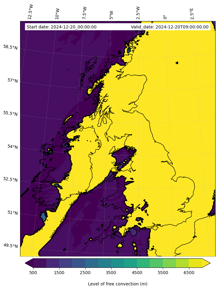 - Level of free convection (m)
