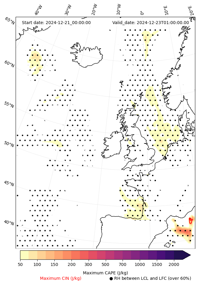 - Maximum CAPE (J/Kg)