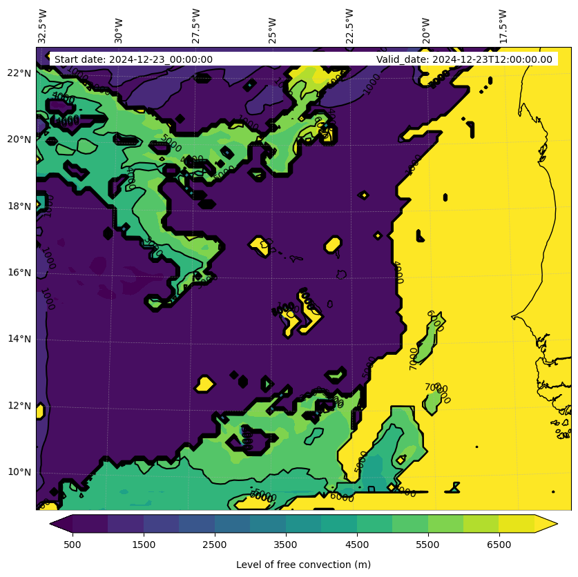 - Level of free convection (m)
