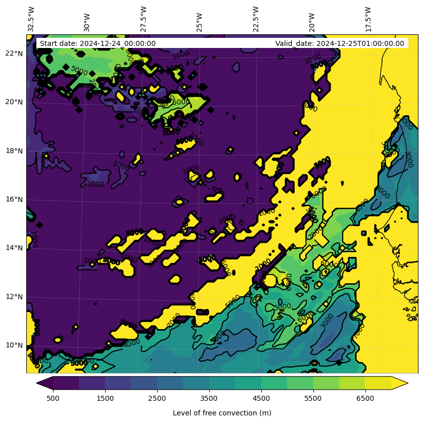 - Level of free convection (m)